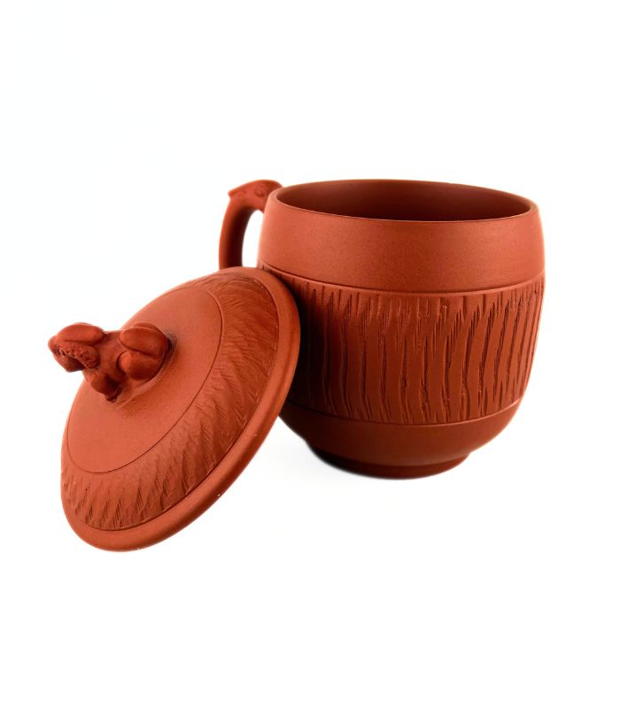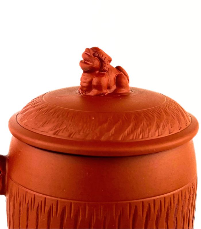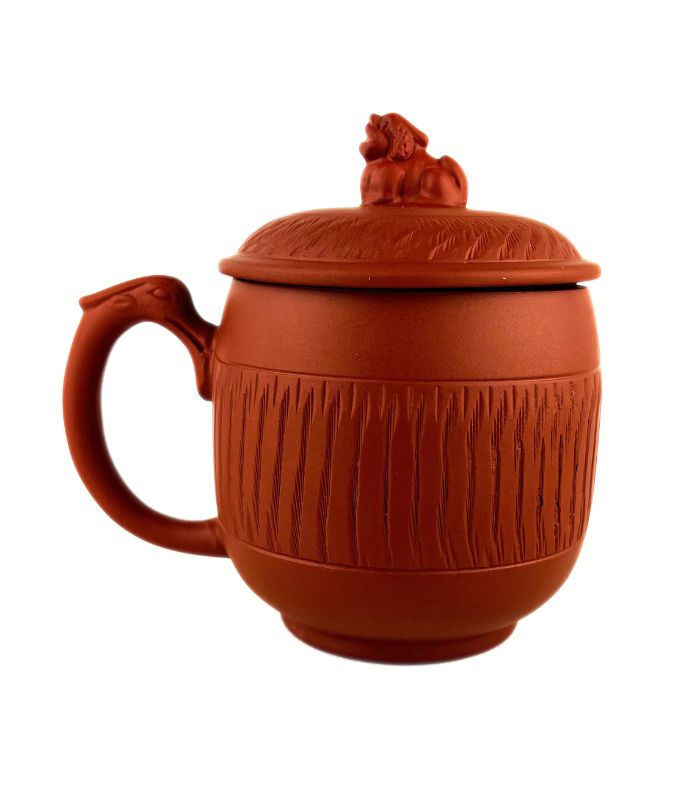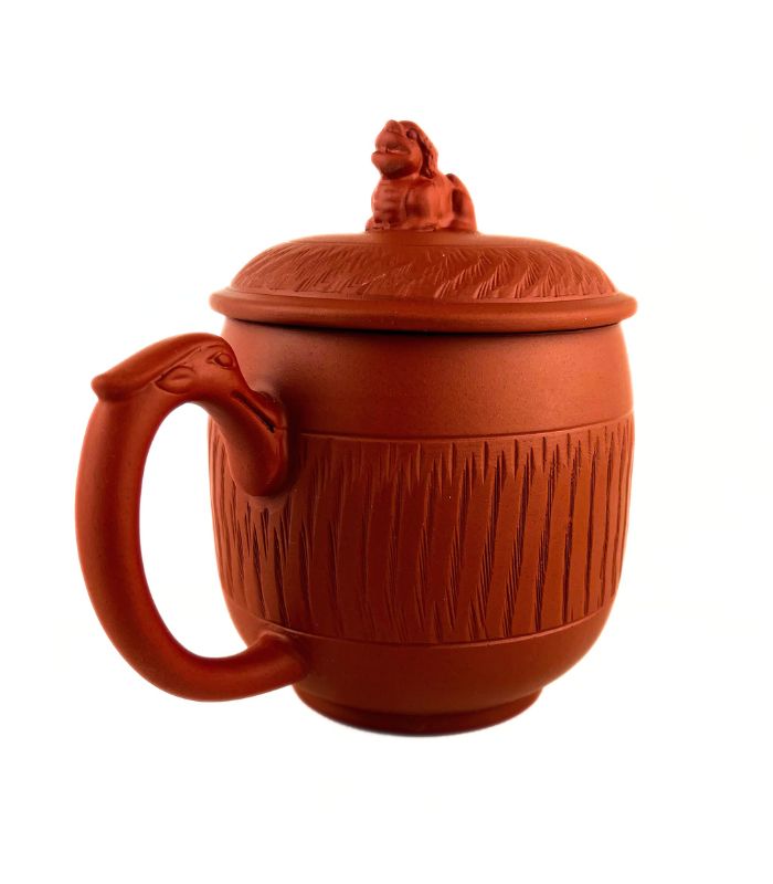 Чайний кухоль з червоної глини «Цілінь» з фігуркою-оберегом на кришці